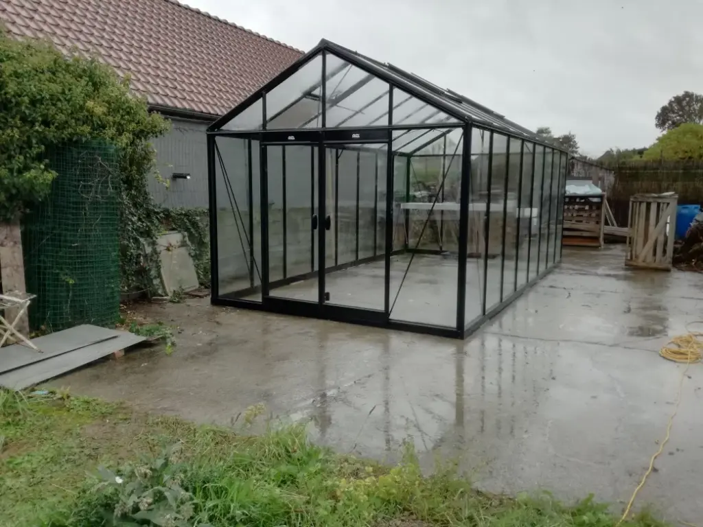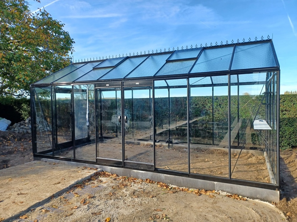 - Verre sécurit clair 4 mm dans les parois latérales et dans la toiture